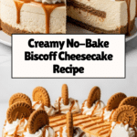 This No-Bake Biscoff Cheesecake features a luscious Biscoff cookie crust and creamy Biscoff-infused filling that sets perfectly in the refrigerator without the need for baking. Topped with a smooth Biscoff drizzle and decorated with cookies, it offers a rich, spiced, and indulgent dessert experience perfect for any occasion.