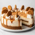This No-Bake Biscoff Cheesecake features a luscious Biscoff cookie crust and creamy Biscoff-infused filling that sets perfectly in the refrigerator without the need for baking. Topped with a smooth Biscoff drizzle and decorated with cookies, it offers a rich, spiced, and indulgent dessert experience perfect for any occasion.