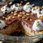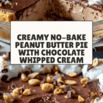 Keywords: no-bake pie, peanut butter pie, cream cheese pie, chocolate whipped cream, easy dessert