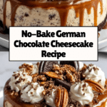 This No-Bake German Chocolate Cheesecake combines a rich Oreo crust with a smooth chocolate cheesecake filling, topped with a luscious coconut-pecan topping. The no-bake method keeps it simple yet indulgent, perfect for dessert lovers craving a decadent treat without the oven.
