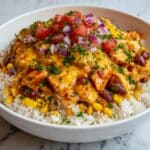 A comforting and flavorful one-pot dish combining tender chicken, creamy cheese, and classic Southwest flavors with rice, beans, and veggies. Perfect for an easy weeknight meal that’s both hearty and cheesy.