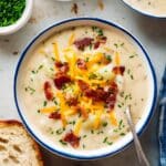 Absolutely. The soup can be made a day ahead and reheated before serving. Just add fresh toppings like bacon and green onions right before eating for the best texture.