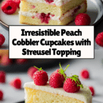 Keywords: Peach Cobbler, Cupcakes, Summer Dessert, Peach Filling, Streusel Topping, Baking, Sweet Treat