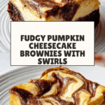 Indulge in these fudgy swirled Pumpkin Cheesecake Brownies that perfectly combine rich chocolate brownie with a creamy, spiced pumpkin cheesecake layer. This decadent dessert features a moist brownie base topped with a luscious pumpkin-spiced mascarpone and cream cheese mixture, all beautifully swirled together for a stunning and flavorful treat that’s perfect for fall or any cozy occasion.
