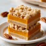 Keywords: Pumpkin pie bars, pumpkin dessert, sweetened condensed milk, autumn dessert, pecan crust, easy pumpkin recipe
