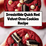 These Quick Red Velvet Oreo Cookies combine the rich flavor of red velvet with the crunch of Oreos and creamy white chocolate chips. They’re perfect for a festive treat or when you want something a little extra special but still easy to make.