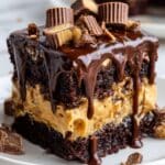 Indulge in the decadent Reese’s Peanut Butter Earthquake Cake, a rich and moist chocolate cake layered with creamy peanut butter, chunks of Reese’s peanut butter cups, fluffy whipped topping, and a luscious chocolate ganache drizzle. This dessert combines the beloved flavors of chocolate and peanut butter into one irresistible, crowd-pleasing cake perfect for any occasion.