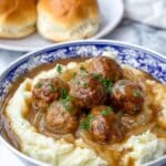 Keywords: Salisbury steak meatballs, slow cooker meatballs, beef meatballs in gravy, comfort food, easy dinner, slow cooker recipe