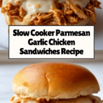 This Slow Cooker Parmesan Garlic Chicken Sandwich recipe offers a flavorful, tender chicken filling slow-cooked with garlic, Parmesan, and herbs, then piled onto toasted sandwich rolls with melted mozzarella cheese. Perfect for an easy, comforting lunch or dinner.