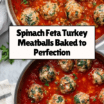 These Spinach Feta Baked Turkey Meatballs combine lean ground turkey with fresh spinach and tangy feta cheese, baked to perfection in a flavorful marinara sauce. This healthy and delicious recipe offers a great way to enjoy a protein-packed meal with Mediterranean-inspired flavors.