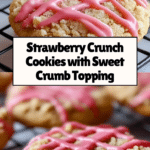 Delight in these Strawberry Crunch Cookies featuring a buttery, soft base topped with a crunchy mixture of freeze-dried strawberries and vanilla wafer crumbs, finished with a sweet pink glaze drizzle. Perfect as a sweet treat with a fruity twist, these cookies combine classic flavors with a colorful and textural contrast.
