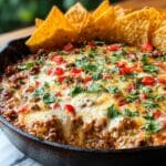 Texas Trash Dip is a bold and cheesy Tex-Mex inspired appetizer combining cream cheese, sour cream, refried beans, Rotel tomatoes with green chilies, and shredded cheddar with a blend of spices. Baked until bubbly and topped with green onions, it’s perfect for game days, parties, or casual gatherings served with tortilla chips.