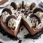 - Decorate & serve: Just before serving, garnish the pie with crushed Oreos, chocolate shavings, or whipped cream swirls to add an attractive and festive touch. Slice and enjoy this delicious holiday dessert!