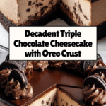 Keywords: Triple Chocolate Cheesecake, Oreo Crust, Chocolate Cheesecake, Dessert, Baking, Decadent Desserts, Chocolate Indulgence