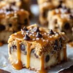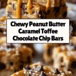 Delight in these Ultimate Peanut Butter Caramel Toffee Chocolate Chip Cookie Bars, a perfect blend of rich caramel, creamy peanut butter, crunchy toffee bits, and melty chocolate chips baked into a chewy cookie base. Ideal for dessert or a sweet snack, these bars combine classic flavors with a luscious swirl topping for an irresistible treat.