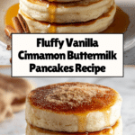 These Vanilla Cinnamon Buttermilk Pancakes offer a cozy and flavorful twist on the classic pancake breakfast. Made with real buttermilk, a hint of warm cinnamon, and rich vanilla extract, these pancakes are light, fluffy, and filled with comforting homemade goodness. Perfect for a relaxing weekend brunch or a cozy breakfast-for-dinner, this recipe yields tender pancakes with a subtly sweet and spiced flavor that pairs beautifully with butter, syrup, or your favorite toppings.