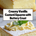 Keywords: vanilla custard, cream squares, custard dessert, baked crust, creamy custard, vanilla dessert, whipped cream custard, easy custard recipe
