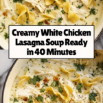 This White Chicken Lasagna Soup delivers all the cozy flavors of classic lasagna in a comforting, easy-to-make soup. Ready in just 40 minutes, it’s perfect for busy weeknights when you want something hearty and satisfying without the fuss.